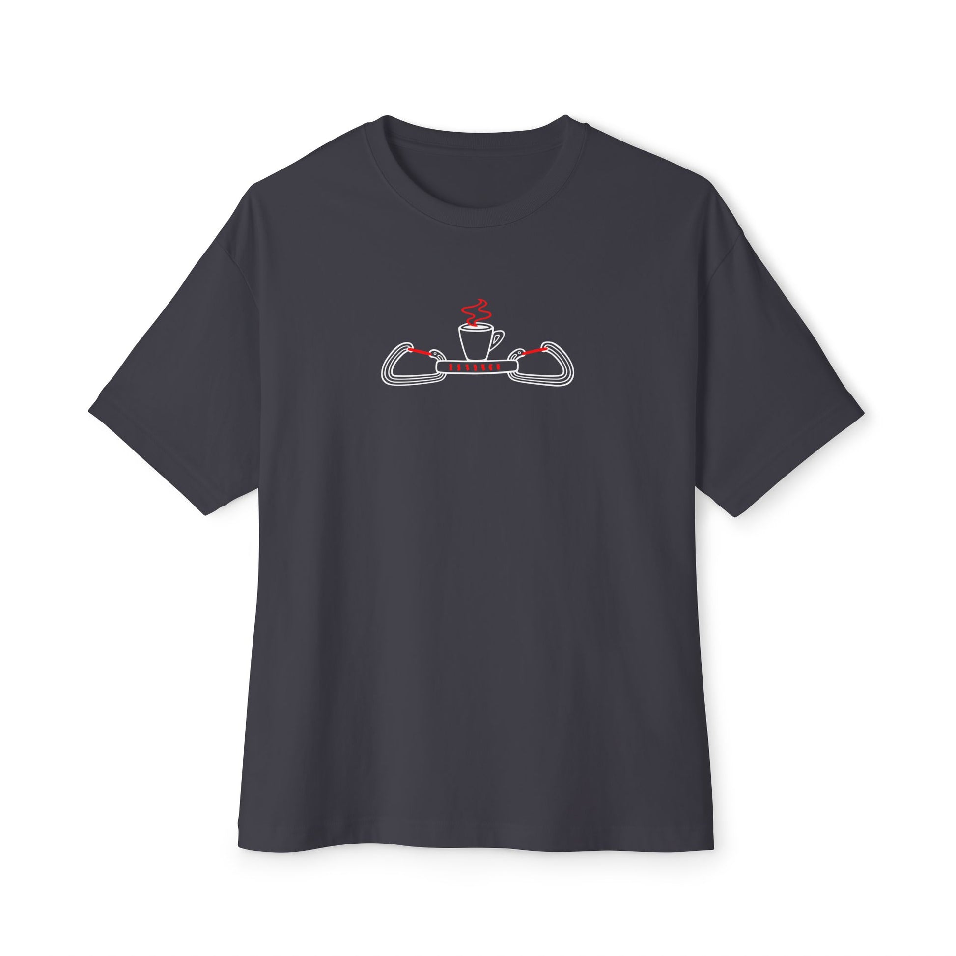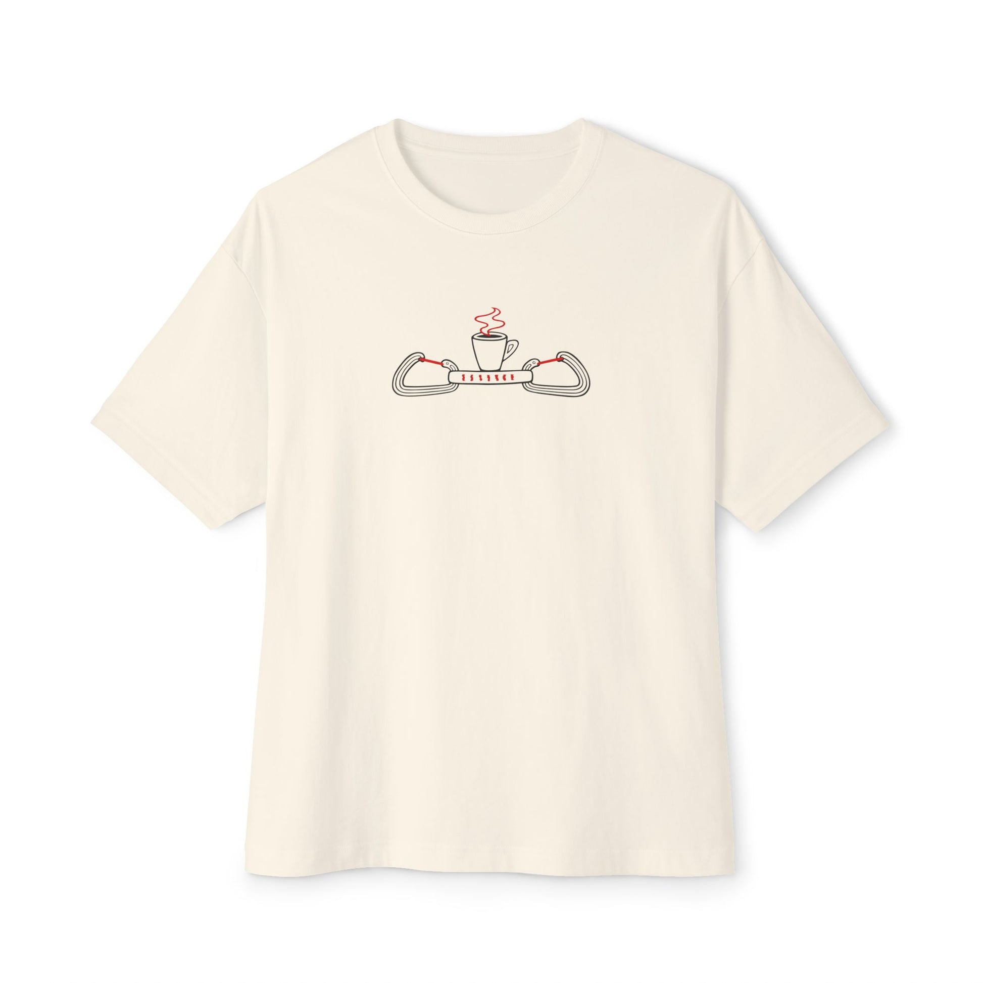 I love a good, solid oversized shirt, so I chose to print these designs on 100% combed and ring-spun cotton with dropped shoulders and a loose, boxy silhouette. The fabric is sturdy and all the seams are double-stitched, so it will hold up at the crag, in the gym, or wherever you choose to wear it. Go ahead and chalk this shirt up all you want, but try not to spill your coffee on it!