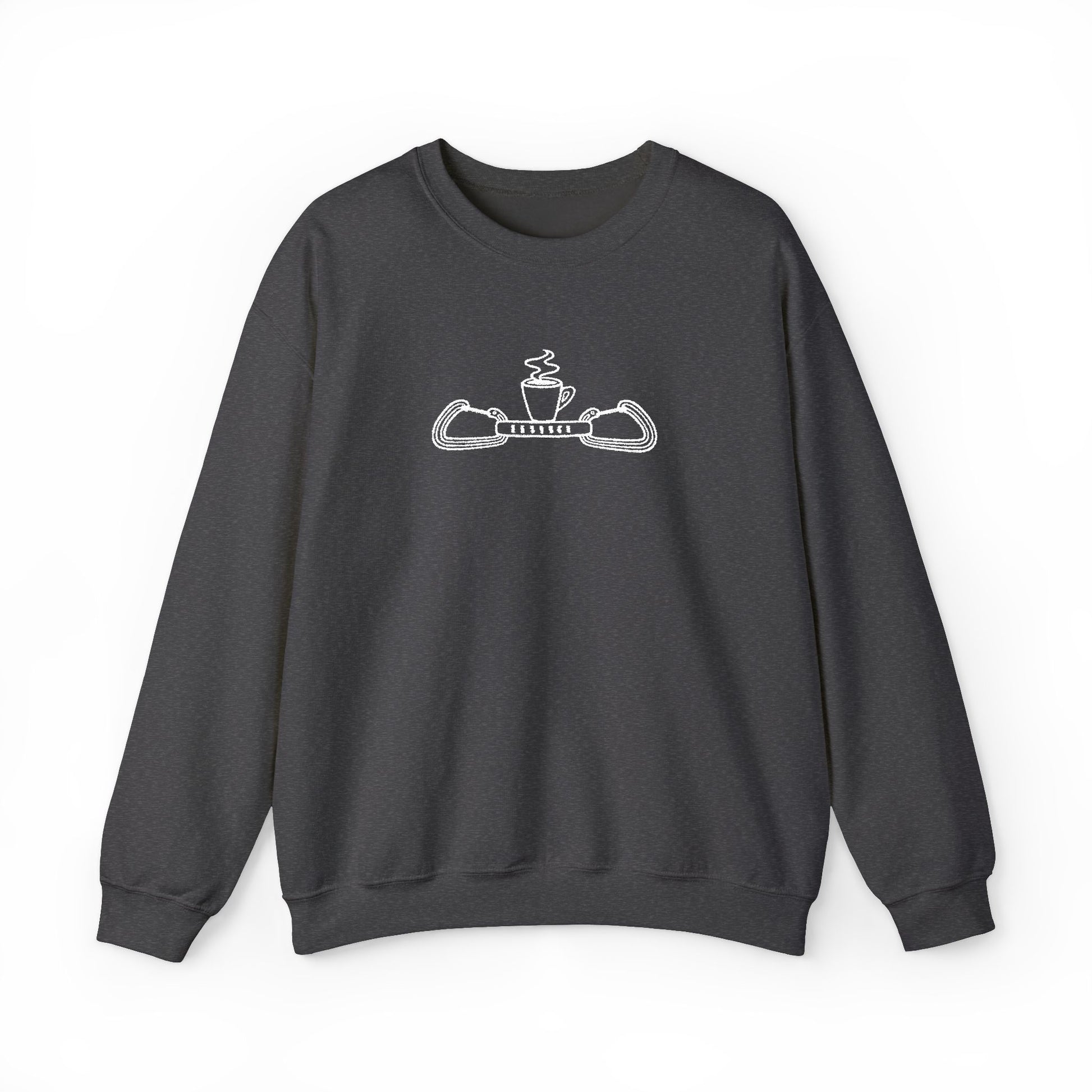 This crewneck sweatshirt is embroidered with the expresso design minus the words, for those who just want the image. Made from ethically-sourced US cotton, this medium-heavy, 50/50 cotton-polyester blend is fuzzy on the inside for ultimate coziness. It's died with OEKO-vertified dye. The perfect layer for when it's your turn to belay and you get a bit chilly!
